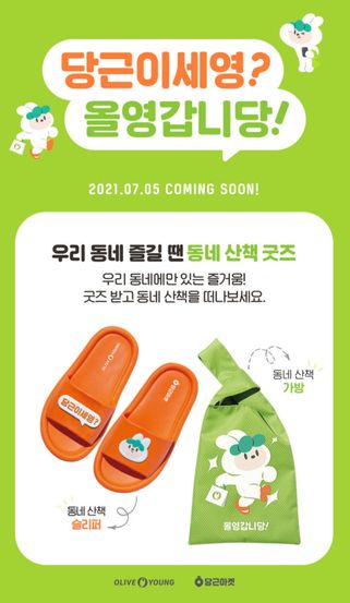 콜라보 기간 동안 전국의 모든 올리브영 매장은 당근마켓과 동네산책 굿즈 프로모션을 알리는 대형 포스터로 꾸며진다. 매장 내 스크린에서도 브랜드 콜라보 영상이 플레이되면서 당근마켓의 브랜드 감성이 생생하게 전해질 전망이다.