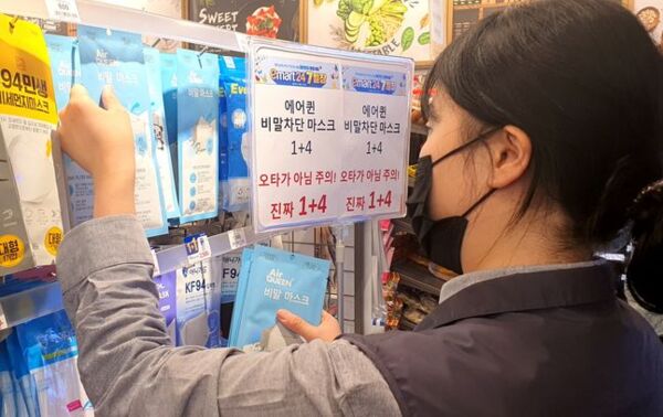 이마트24는 내달 1일부터 7일까지 에어퀸 KF-AD(2입) 2종(대형/소형)의 비말차단마스크를 1+4로 판매한다. 1개 가격인 1500원으로 5개를 받을 수 있는 이벤트로 개당 300원 꼴이다. 1개당 2입인 것으로 감안하면 비말차단마스크 1장을 150원에 구매할 수 있는 기회인 셈이다.에어퀸 비말차단 마스크 2종은 7일장 기간 1+4 판매 후 월말까지 1+1로 판매한다.
