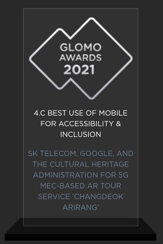 SKT는 문화재청‧구글과 함께 AR을 통해 창덕궁을 직접 체험 및 관람할 수 있도록 제작한 앱 서비스 '창덕아리랑'을 통해 모바일 접근성‧포용성 부문 최우수상을 수상했다.