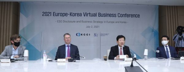 대한상공회의소가 주한유럽상공회의소(ECCK)와 공동으로 2일 ‘ESG 비즈니스 컨퍼런스’를 개최했다. ESG 경영 확산을 위한 유럽 및 한국의 ESG 공시 및 경영전략에 대해 논의한 자리다.