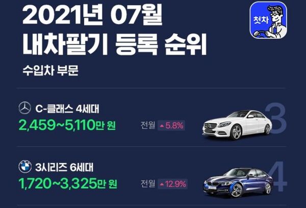 수입차도 시세 변동이 컸다. 벤츠 C-클래스 4세대는 5.8%, 미니 쿠퍼 3세대는 8% 높아진 시세를 형성했다. 특히 BMW 3시리즈 6세대는 12.9% 오르면서 수입과 국산을 통틀어 가장 가파른 상승폭을 보였다.