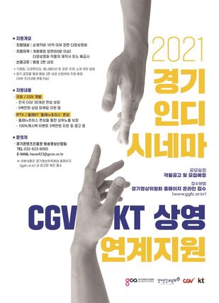 CGV 조진호 콘텐츠기획 담당은 “경기인디시네마 CGV·KT 상영 연계지원 사업은 숨겨진 보석 같은 영화를 발굴해 관객들에게 소개하는 좋은 기회가 될 것”이라며 “현재 운영 중인 아트하우스를 비롯해 여러 사업을 통해 다양성 영화 지원을 확대할 계획"이라고 전했다.