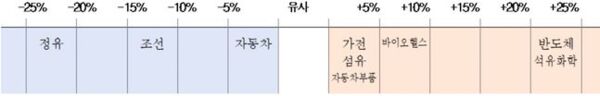 정유업종은 코로나 장기화로 항공유를 중심으로 주요 석유제품의 수요 회복 지연에 따른 역성장이 예상된다.