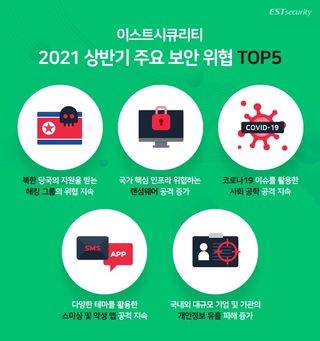 보안 전문 기업 이스트시큐리티는 21일 올해 상반기 발생한 주요 보안 위협 탑5를 선정해 발표했다.