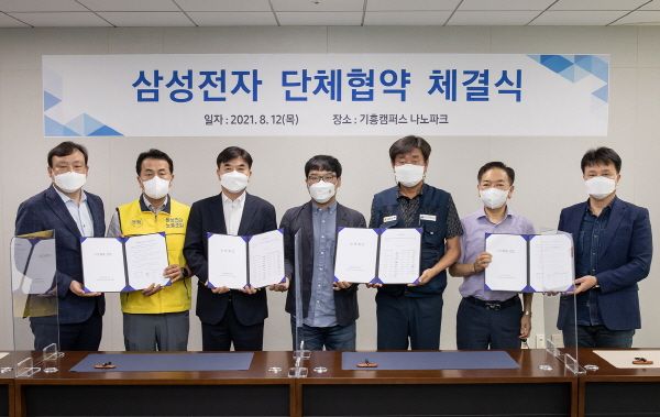삼성전자 노사가 사상 첫 단체협약을 체결했다. 12일 기흥캠퍼스 나노파크에서 삼성전자와 노동조합 공동교섭단의 단체협약 체결식이 진행됐다.