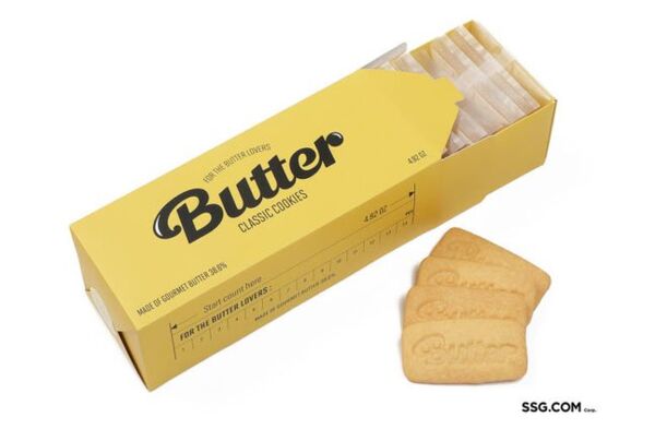 뱅앤베이커스는 하이브에서 지난해 상표 출원한 베이커리 브랜드다. 이번에 판매하는 '버터쿠키'는 방탄소년단의 곡 '버터(Butter)'의 그래픽 요소를 반영한 패키지 디자인으로 제작했다. 38.6%의 높은 버터 함유량으로 부드러운 식감이 특징이다. 프랑스 AOP 인증을 받은 프리미엄 레스큐어 버터를 사용해 진하고 향긋한 버터 풍미를 느낄 수 있으며 가격은 2만원이다.
