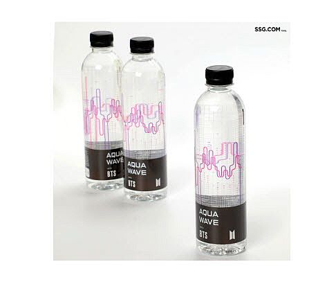 '아쿠아웨이브 with BTS’는 지난 6월 하이브가 선보인 프리미엄 생수 제품이다. 강원도 속초 청정 해역의 수심 200m 이하에서 추출한 해양 심층수를 담은 것이 특징이다. 500ml 용량의 생수 20개입을 묶어 1팩으로 구성했으며 가격은 2만 4000원이다.