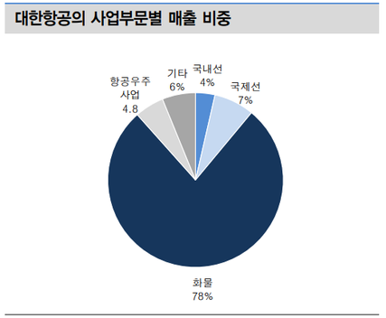 현재 대한항공 매출 비중은 운송(여객+화물)이 89%로 압도적이다. 코로나19 팬데믹에서는 여객 부진을 화물이 상쇄했지만, 내년 이후에도 화물 사업이 호황할 것이란 전망에 대해서는 부정적인 의견이 나온다.