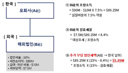 이경근 세무사는 "한국 모기업이 저세율국에 자회사를 보유한 경우 최저한세율에 따른 추가세액을 도출해 모기업이 한국 국세청으로 추가 납부해야 한다”고 설명했다.