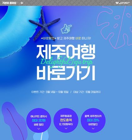 이번 프로모션은 9월과 10월에 제주여행을 떠나는 고객들을 위해 마련됐으며 10월 10일까지 진행된다.