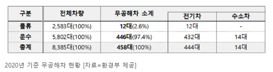 물류업계 친환경차 도입은 아직 미미하다. 환경부에 따르면 지난해 물류업계 전체 차량 2583대 중 친환경 차량은 2.6%인 12대에 그쳤다. 12대는 모두 전기차로 조사됐다.