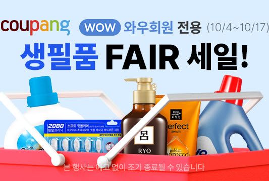 쿠팡은 고객들이 자주 찾는 인기 생필품을 한 곳에 모아 풍성한 혜택과 함께 선보이는 ‘10월 생필품 페어’를 진행한다고 12일 밝혔다.