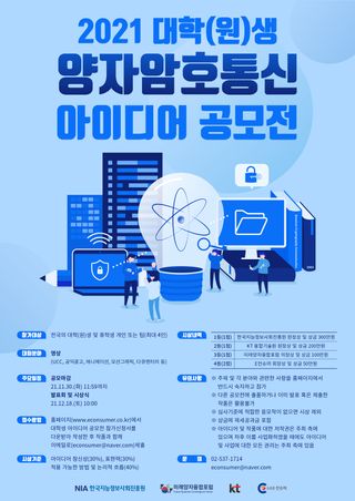 양자암호통신 공모전은 양자암호통신 전공자 뿐만 아니라 인문·사회·예술 등의 전공을 가진 대학(원)생도 참신한 아이디어만 있다면 누구나 참여 가능하다.