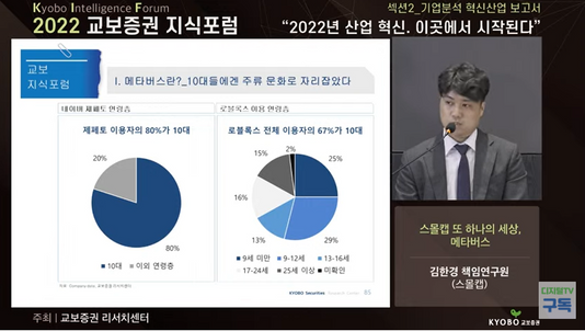 15일 교보증권이 주최한 '2022 지식포럼'에서 김한경 교보증권 책임연구원은 "메타버스는 단발성 테마가 아닌 지속가능한 성장 산업으로 중장기 관점에서 지속적인 관심이 요구되는 분야"라고 말했다.