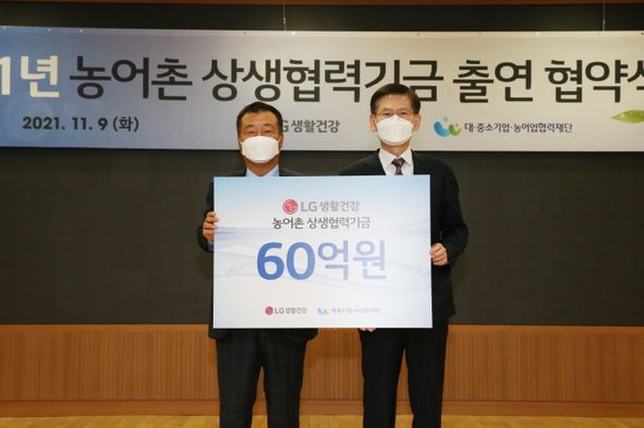 LG생활건강은 지난 9일 서울 종로구 LG광화문빌딩에서 대·중소기업·농어업협력재단(이하 협력재단)과 농어촌상생기금 출연 협약을 체결했다. 이날 협약식에는 박헌영 LG생활건강 전무, 김순철 협력재단 사무총장 등이 참석했다.