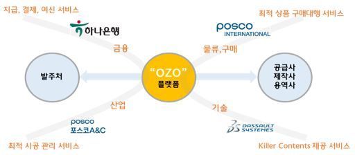 포스코A&C는 지난 11일 하나은행, 포스코인터내셔널, 다쏘시스템, 형경산업과 함께 금융·구매/물류·기술·산업 등을 통합해 B2B플랫폼을 제공하는 신규법인 '주식회사 OZO'의 설립을 위한 업무 협약을 체결했다. 기업과 기업, 기업과 금융을 연결하는 'OZO 플랫폼'의 성공적인 구현에 상호 협력할 방침이다.