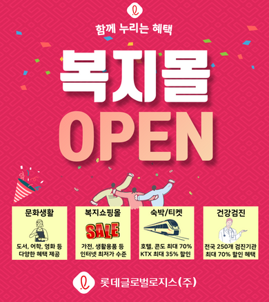 롯데글로벌로지스는 25일 대리점 택배기사 및 사무직 직원, 운송사와 터미널 도급업체 직원들을 위한 온라인 복지몰을 오픈했다고 밝혔다.