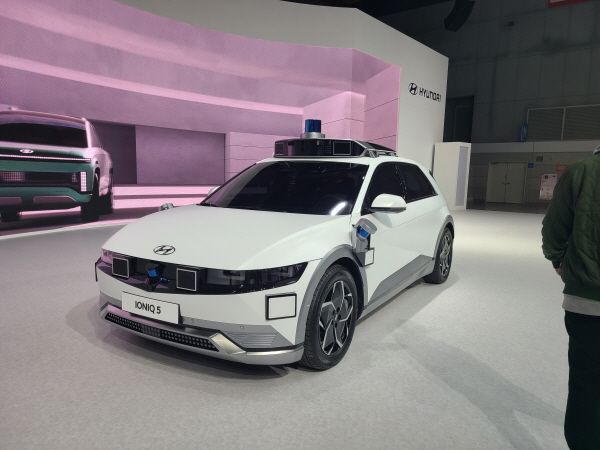 전시장 전면에는 자율주행센서를 가득 담은 '아이오닉5'를 볼 수 있다. 이 밖에도 현재 '자율주행 레벨4(완전 자율주행 전 단계)' 기술을 시연중인 넥쏘 차량의 도심 주행 모습을 영상으로 볼 수 있다. 혼잡한 도심은 물론 골목길, 교차로 이동 등 다양한 교통상황에 민첩하게 대응하는 모습이 인상적이다.