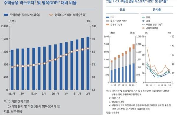 지난 23일 한국은행이 발표한 금융안정보고서에 따르면 늘어난 주택금융 익스포저(위험노출액)가 집값에 하방 압력을 넣고 있다.