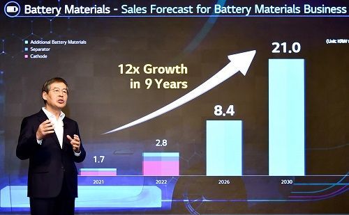 회사 측은 전지소재 사업을 2021년 매출 1.7조에서 2030년 21조로 12배 이상 성장시킨다는 계획이다. 두 자릿수의 영업이익률을 창출하는 고수익 사업으로 키운다는 복안이다.