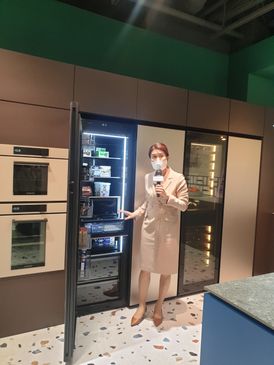 먼저 인피니트 라인업 공간에는 냉장·냉동·김치·와인 기능을 전문적으로 구현하는 1도어 냉장고와 대용량 4도어 냉장고를 비롯해 오븐·인덕션·스마트 후드·식기세척기가 자리했다. 주방 전체를 빌트인 룩(Built-in Look)으로 연출하면서 깨끗하고 정돈된 고급미가 연출됐다.
