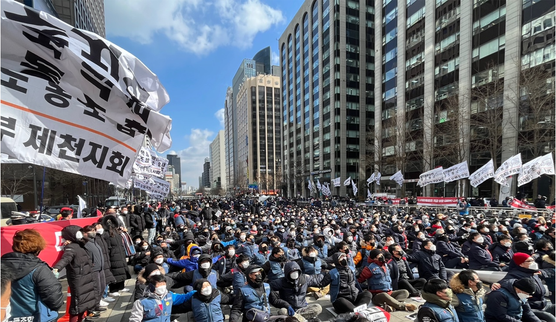 노조는 △택배요금 인상분 이윤으로 빼돌리기 △주6일제, 당일배송 등 독소조항 부속합의서 등을 이유로 지난해 12월 28일 파업에 돌입했다. 노조 파업은 이날로 56일을 맞았다. 노조는 이날 오후 7시 택배노동자 과로사 방지와 사회적합의 이행을 위한 미사를 실시하는 등 농성을 이어갈 계획이다.