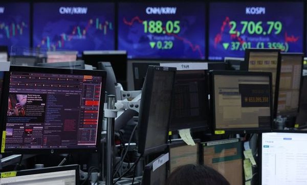 22일 한국거래소에 따르면 이날 코스피지수는 전장보다 37.01p(1.35%) 떨어진 2706.79에 거래를 마쳤다.