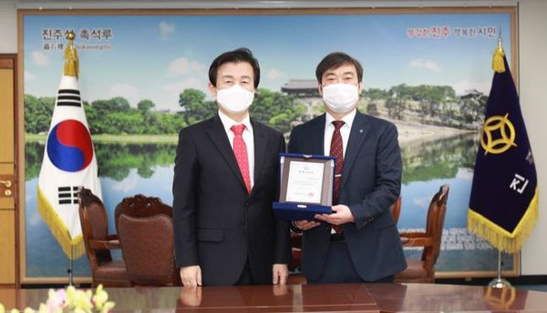 조규일 진주시장은 박 원장에게 명예시민증을 수여하고 시민 안전과 지역발전을 위해 애써온 데 대한 감사의 뜻을 전했다.