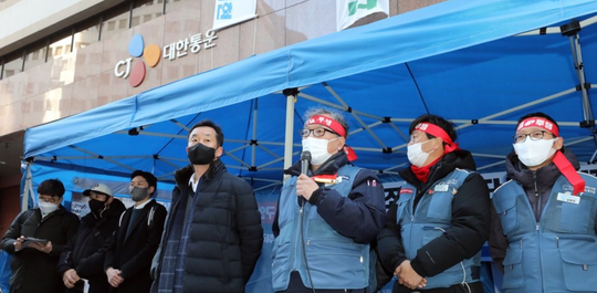 전국택배노동조합과 CJ대한통운 대리점연합회가 23일 오후 3시 서울 중구 CJ대한통운 본사 앞에서 시작한 비공개 대화를 마쳤다.