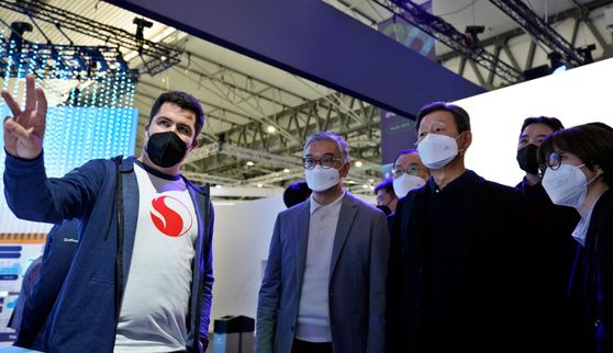 황 대표는 제일 먼저 퀄컴의 부스를 찾아 5G 단독모드(SA)에서 구현할 수 있는 다운링크 4CA(주파수집성) 기술에 대한 설명을 듣고 퀄컴의 칩이 탑재된 화성 탐사선 'Ingenutity Helicopter'와 같은 모델을 지켜봤다.