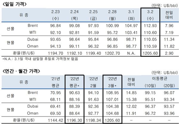 국제유가가 배럴당 110달러를 넘어섰다. 러시아의 우크라이나 침공에 따른 전쟁 장기화가 예상되는 가운데 산유국들이 증산에 소극적 태도를 보인 것이 주요 원인이다. 고유가 지속 전망이 우세한 가운데 국내 정유 및 석유화학업계의 우려도 커지는 모양새다.