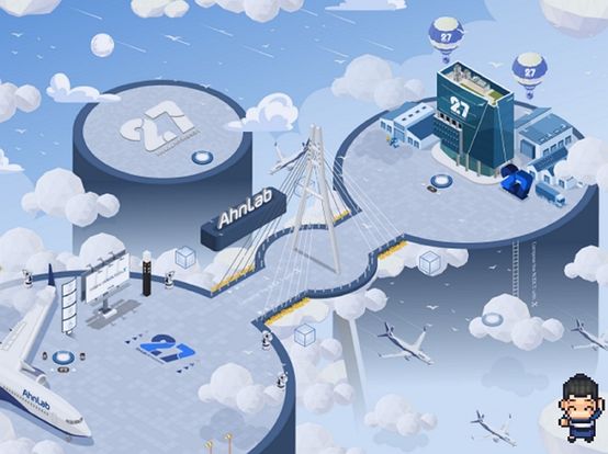 안랩은 11일 메타버스 기반 '안랩월드'에서 비대면으로 창립 27주년 기념 행사를 개최했다고 밝혔다. 안랩은 오는 15일 창립기념일을 앞두고 메타버스 플랫폼 게더타운을 활용해 안랩 사옥의 주요 공간을 구현한 가상공간 안랩월드를 조성했다.