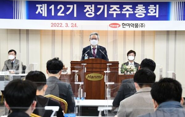 이어 이날 오전 10시부터 열린 한미사이언스 주주총회에서는 작년 매출 9502억원과 영업이익 589억원, 순이익 429억원 등 주요 경영 실적 보고가 진행됐으며, △곽태선, 신유철, 김용덕 사외이사 선임 △감사위원회 위원 선임 △이사 보수한도 승인의 건이 의결됐다. 사내이사 임기가 만료된 임종윤 사장의 재선임 안건은 없었다.