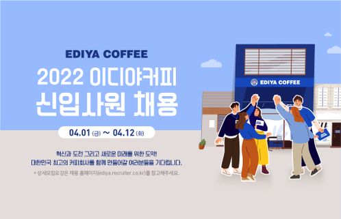 이디야커피는 올해 상반기 신입사원 공개채용을 한다고 30일 밝혔다.