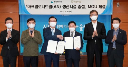 울산시와 두 회사는 31일 울산시청 상황실에서 '아크릴로니트릴(AN) 생산시설 증설 투자 양해각서(MOU)'를 체결했다.