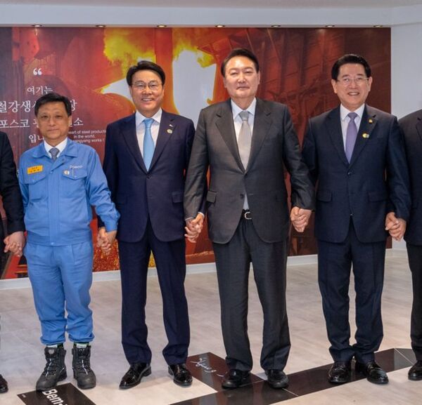 21일 포스코그룹에 따르면 윤 당선인은 이날 세계 최대 규모의 포스코 광양제철소를 방문했다. 최 회장과 김영록 전남도지사 등과 티타임을 갖고 광양 1고로를 방문해 직원들을 격려했다.