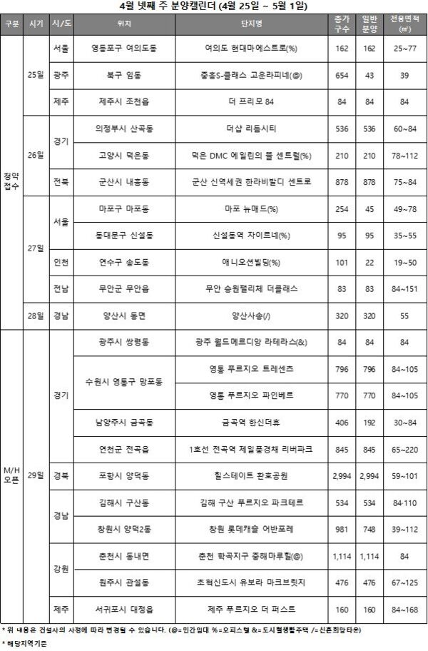 청약 물량은 적지만 모델하우스는 총 11곳이 오픈을 앞뒀다. 당첨자 발표는 14곳 계약은 29곳에서 진행된다.