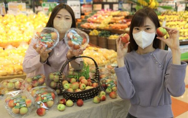 롯데마트가 외형은 천도복숭아처럼 단단하고 과육은 백도 복숭아처럼 하얗고 부드러운 '신비 복숭아'의 판매를 시작한다고 4일 밝혔다.