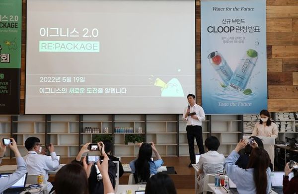 이그니스는 19일 서울 중구 커뮤니티하우스 마실에서 '지속가능한 식문화를 위한 이그니스 2.0 RE:PACKAGE 기자간담회'를 개최하고 개폐형 알루미늄 캔 워터 '클룹'을 소개했다.