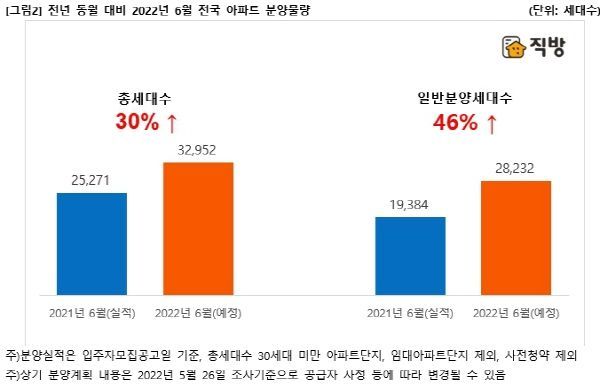 30일 부동산 플랫폼 직방은 내달 내달 전국에서 62개 단지, 3만2952가구가 분양할 예정이라고 밝혔다. 일반분양 물량은 2만8232가구다. 지난해 동기 대비 총 가구수는 30% 많고 일반분양 가구는 46% 증가한 물량이다.