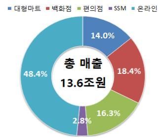 오프라인 유통업체의 경우 백화점 매출이 지난해 같은 달보다 19.1% 증가했다. 편의점과 대형마트도 10.9%, 2.0% 각각 늘었다. 기업형 슈퍼마켓(SSM)은 1.8% 축소됐다.