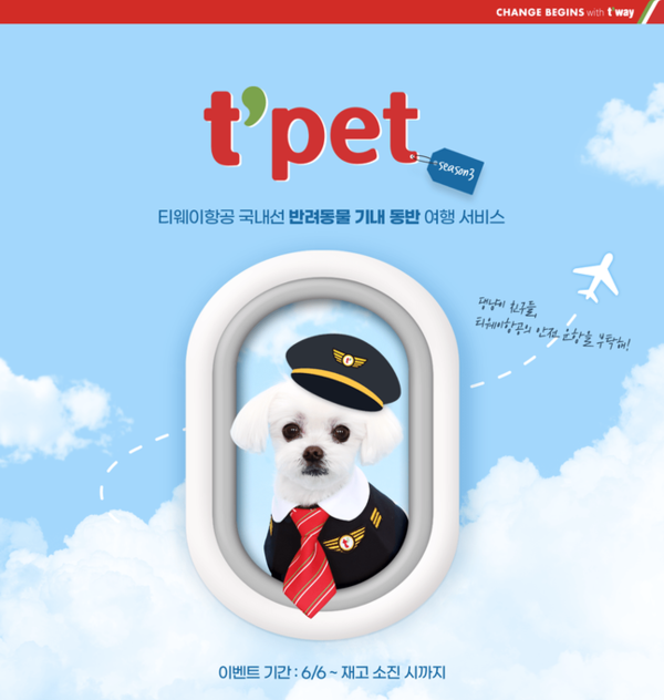 티웨이항공이 티펫(t'pet) 시즌3를 오는 6일부터 선보인다.