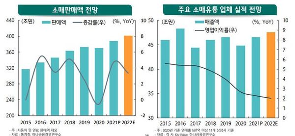 업계 전반적으로는 코로나19에서 벗어나 일상회복이 가능할 것이란 기대감으로 백화점·대형마트·편의점 등 소매 유통업계에 대해 장밋빛 전망을 제시하고 있다.