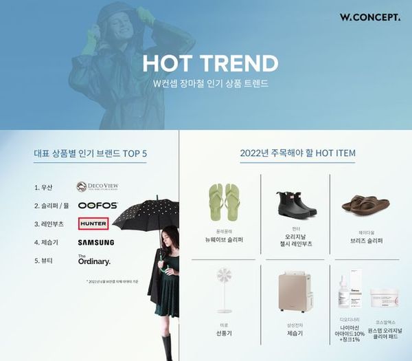 W컨셉이 장마철 인기 상품 트렌드를 소개하고 장마를 대비하는 고객을 겨냥해 관련 상품 판매를 진행한다고 12일 밝혔다.