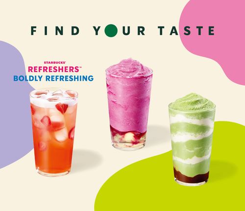 콜드 브루 모카 소스와 에스프레소 휩의 달콤함이 말차와 조화를 이루는 △커피 드로잉 말차 프라푸치노, 산뜻한 와인에 자두, 천도 복숭아 등 여름 제철 과일을 절여둔 듯한 상큼한 풍미의 논알코올 과일 블렌디드 △퍼플 사워 블렌디드도 선보인다.
