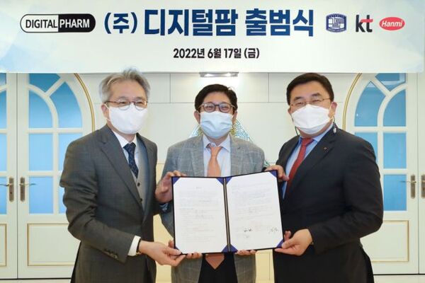 KT와 한미약품은 디지털치료기기(DTx) 및 전자약 전문기업 디지털팜에 합작 투자를 단행, 출범식을 개최했다고 19일 밝혔다.