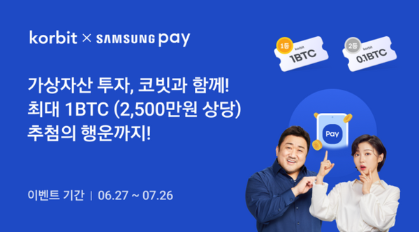 국내 최초 가상자산 거래소 코빗(대표 오세진)이 삼성페이 애플리케이션(앱) 고객들을 대상으로 '삼성페이 연동 기념 이벤트'를 진행한다고 28일 밝혔다.