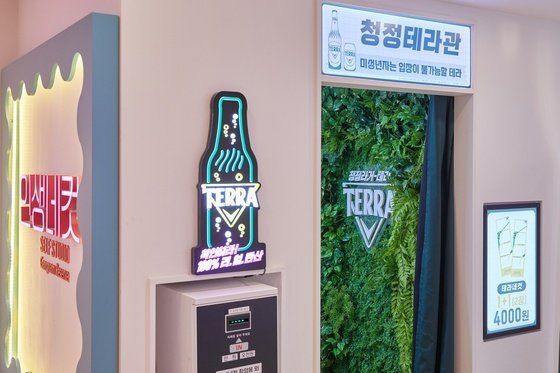 서울 강남과 홍대 매장에는 테라 전용 부스도 각각 1대씩 설치했다. 부스는 테라의 시그니처 색상인 초록색과 테라의 심볼로 구현했다.
