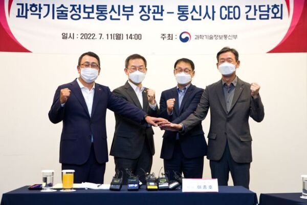 이 장관은 11일 오후 2시, 서울 대한상공회의소 회의실에서 유영상 SK텔레콤 대표, 구현모 KT 대표, 황현식 LG유플러스 대표 등 이통3사 CEO와 취임 후 첫 간담회를 가졌다.