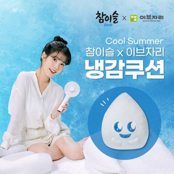 하이트진로는 참이슬과 이브자리가 협업해 만든 '이슬방울 냉감쿠션'을 한정 출시한다고 12일 밝혔다.